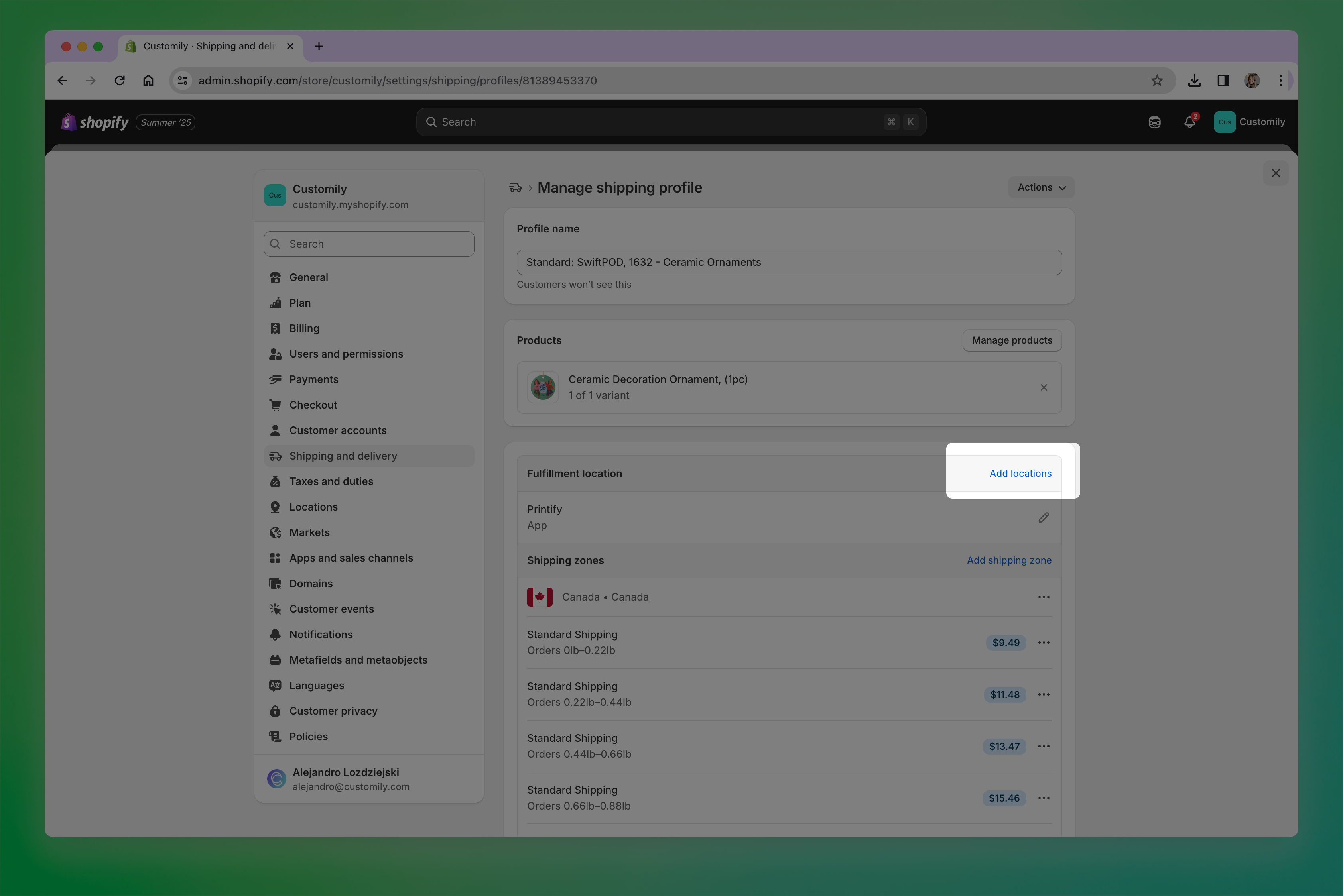 Once you have ShineOn added as your Production Partner, open your Customily