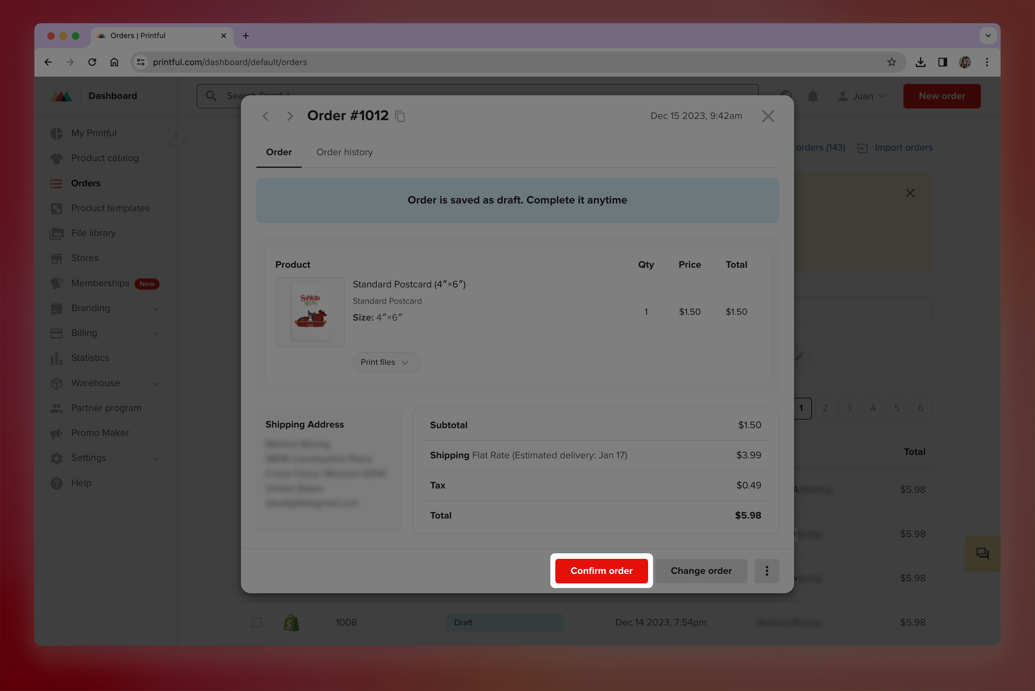 Confirm the order on ShineOn