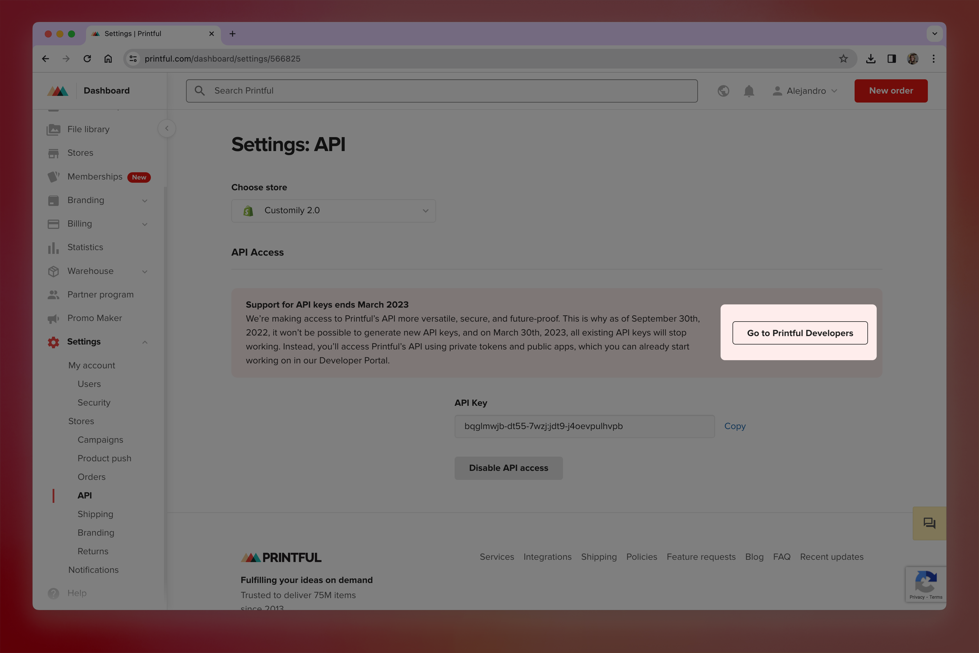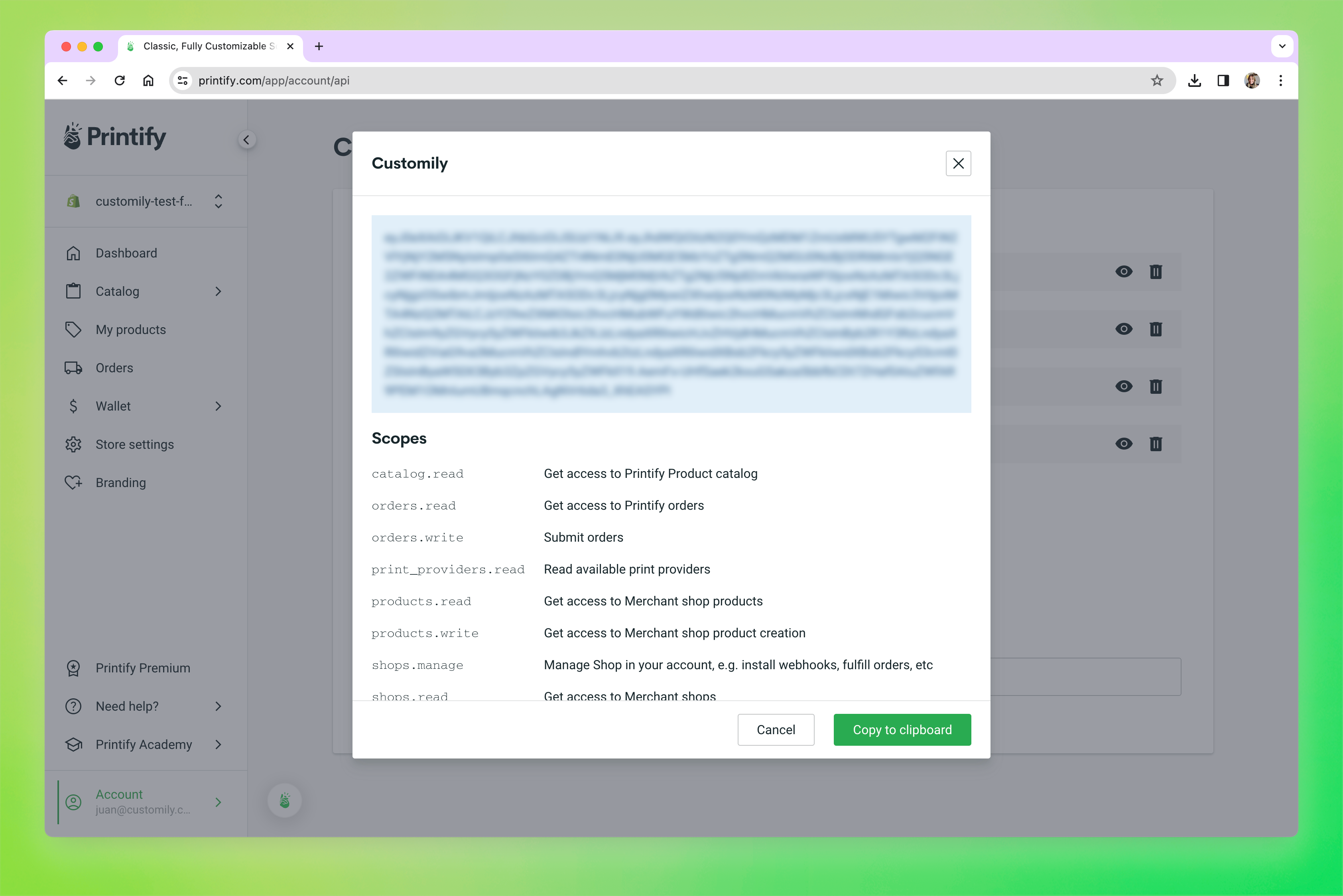 - Generate your API Key and copy the value to use it in Customily API Key field