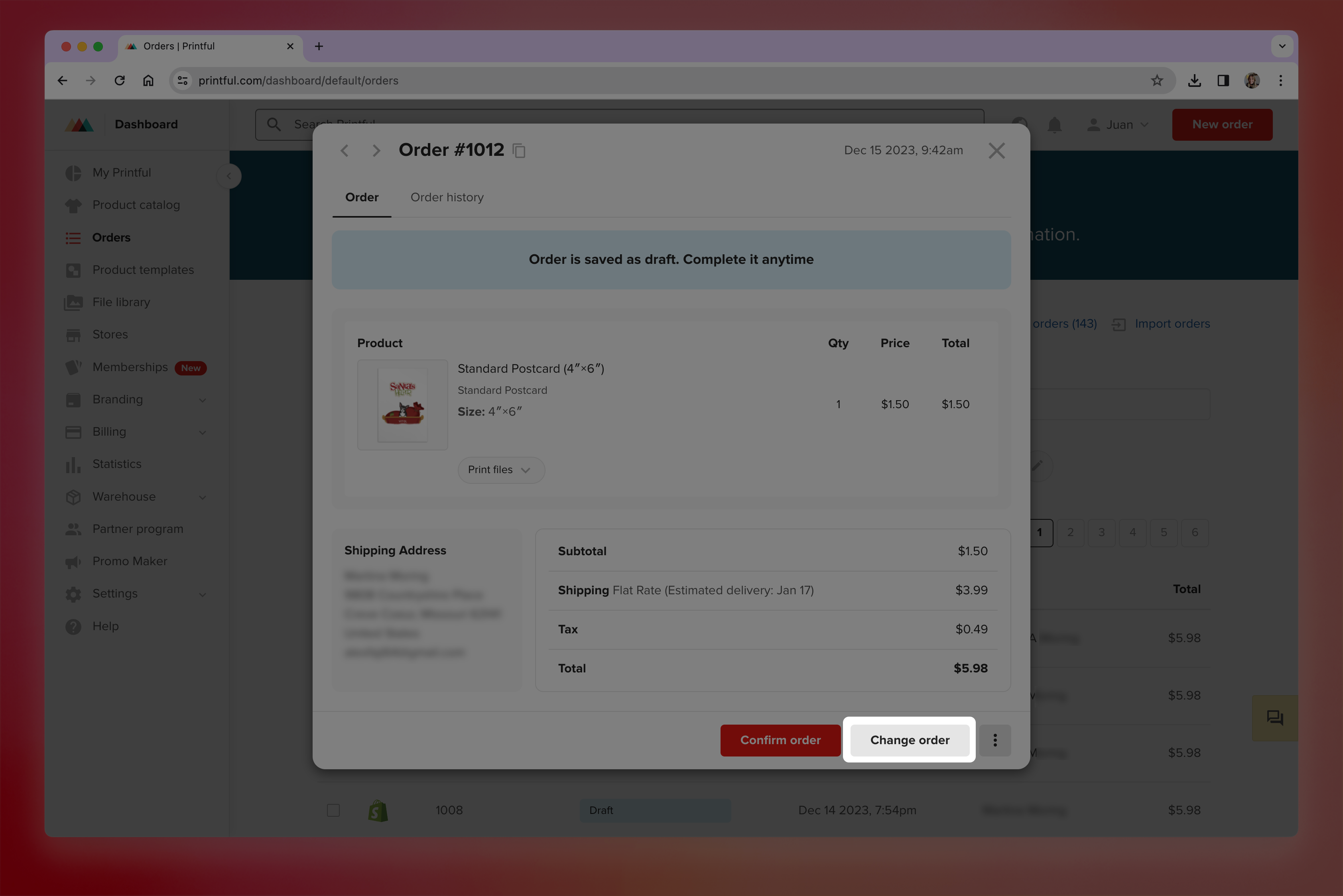 Orders in ShineOn will always be created as draft orders. This means **you