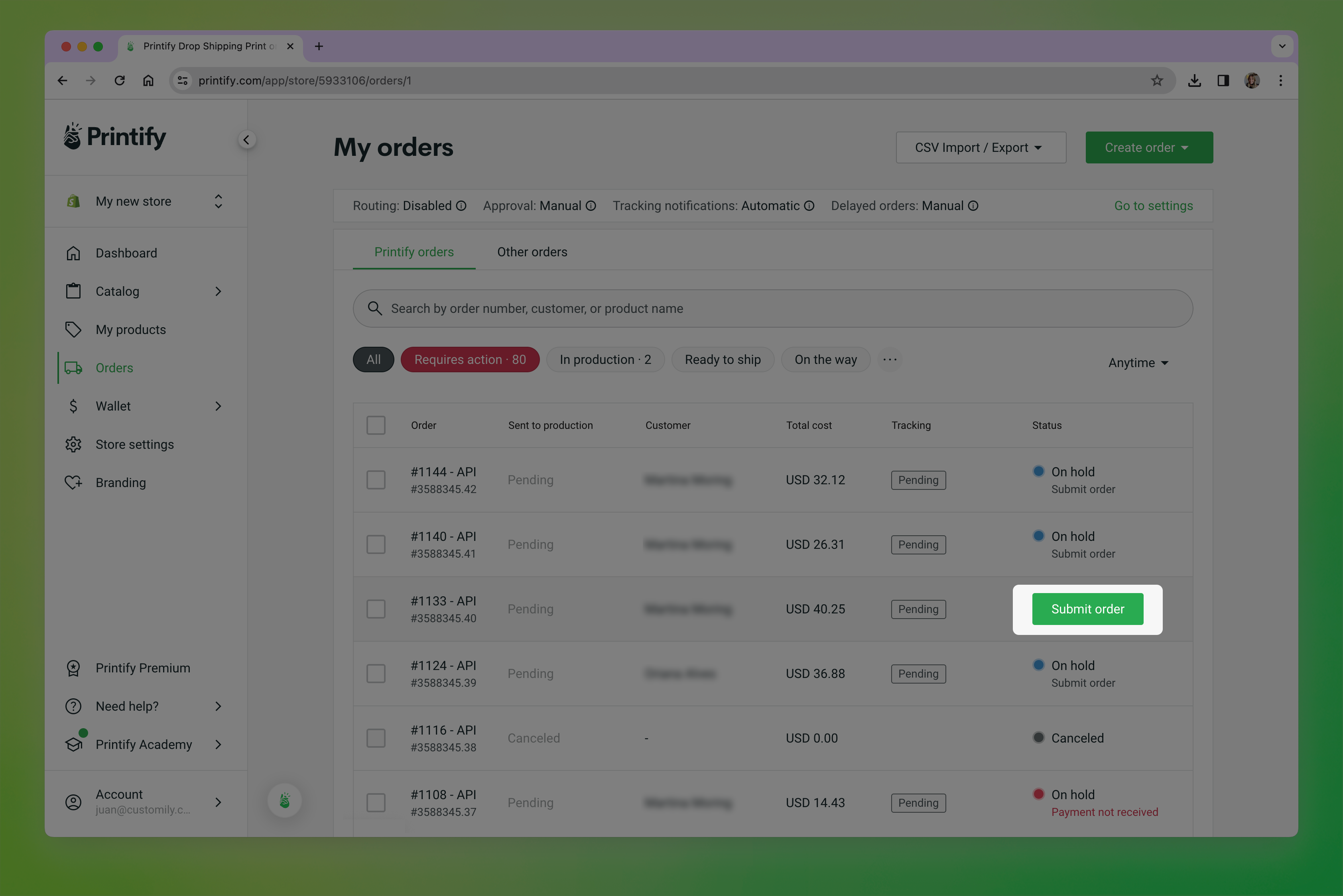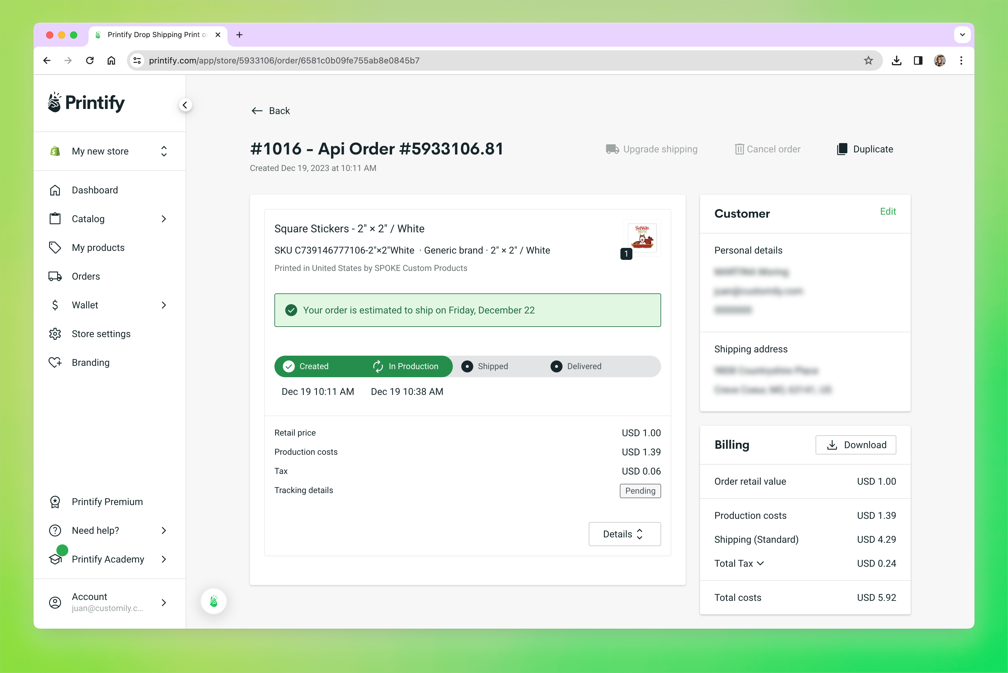 Once you confirm the order, Merchize will start working on it. You'll see