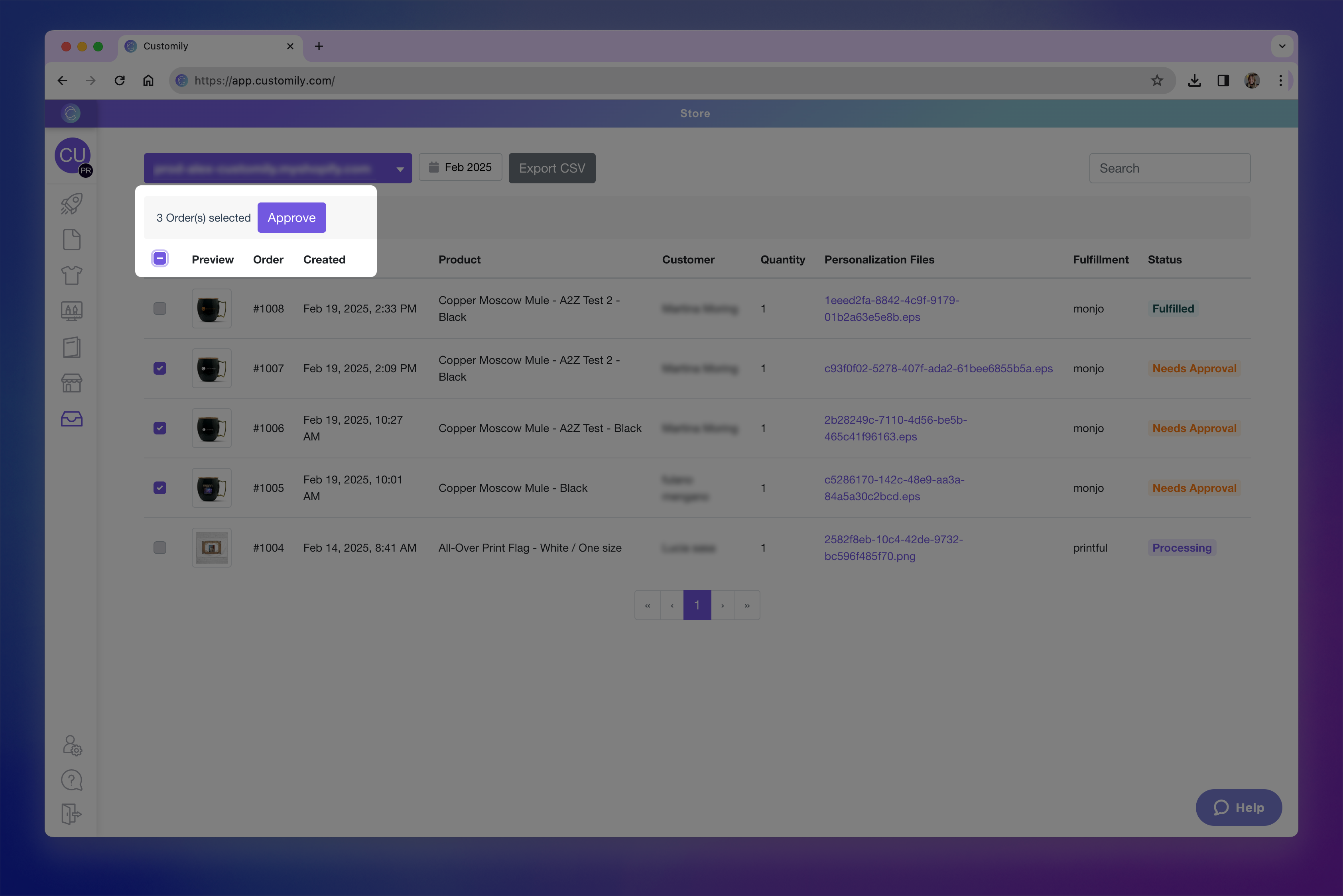 the products for them. So for Customily to be able to send the orders from