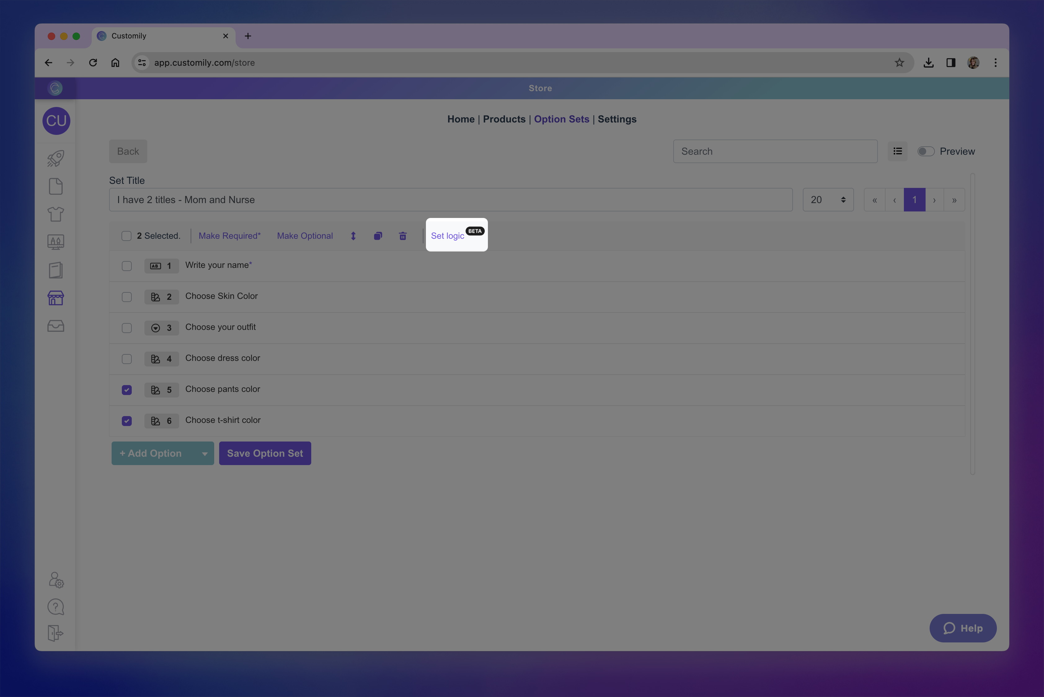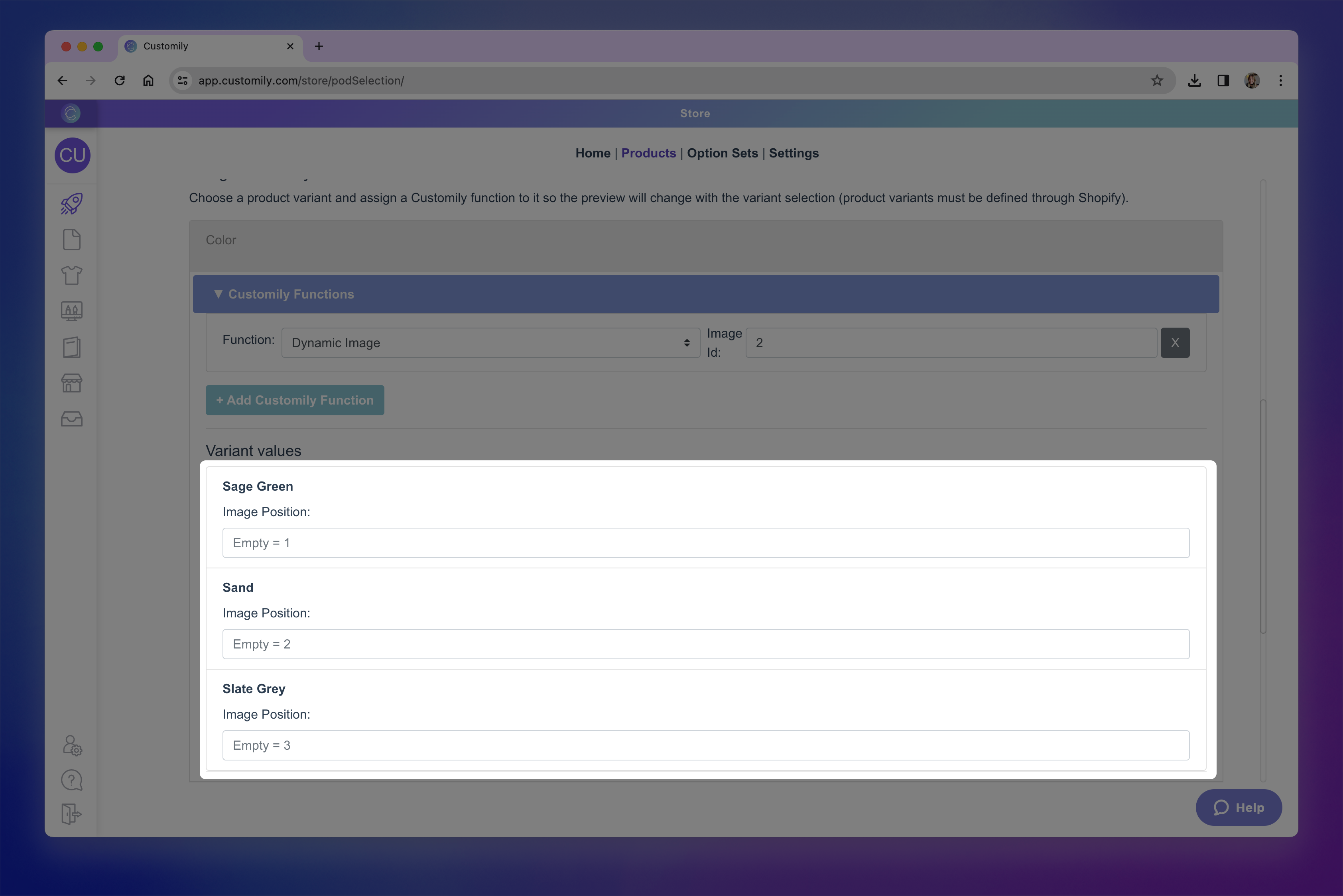 - Open the*[**Store**](https://help.customily.com/en/article/access-your- stores-products-on-customily)**Store****** tab in the left menu.
